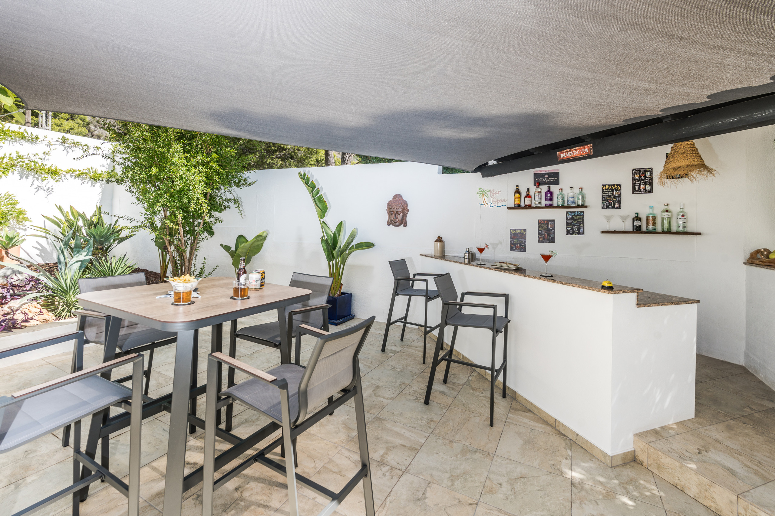 La villa ofrece un hermoso espacio exterior que cuenta con una piscina privada, una gran terraza rodeada de jardines, proporcionando un ambiente sereno para tomar el sol, leer o pasar tiempo de calidad con seres queridos. Un punto destacado de Villa Tranquila es su zona de barbacoa, equipada con una barbacoa de gas, perfecta para cenas al aire libre y reuniones junto a la piscina en la gran mesa de comedor donde el almuerzo y la cena se mezclan con familia y amigos.